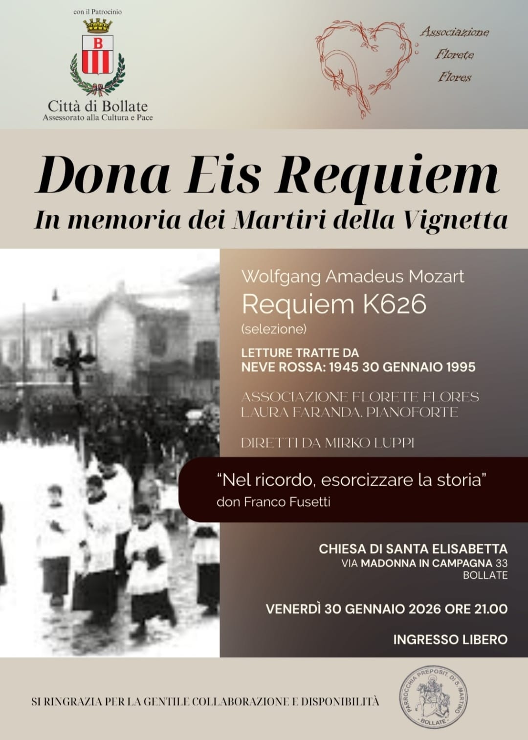 In occasione dell’81° anniversario della strage della Vignetta, avvenuta il 30 gennaio 1945 a seguito del bombardamento di un convoglio delle Ferrovie Nord, il Comune promuove alcune iniziative per commemorare coloro che vi persero la vita e lanciare un messaggio di pace e di memoria.